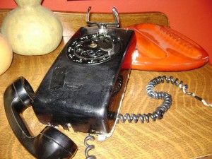 The other day, I went “thrifting” with the girls and made 2 totally fruitless purchases, except that they gave me something tangible to remember those years there. I got an over-sized, burnt-orange Haeger pottery ash tray just like my grandma used to have in her house (there are slots for at least 9 cigarettes!). So 1960s! And, I got an old black, rotary, wall phone by Bell – one exactly like the one that hung in our kitchen at 1723 York Street when my phone number was 266-7121. These are worthless artifacts except to look at and recall a time and place and the innocent girl who skipped and romped through it.